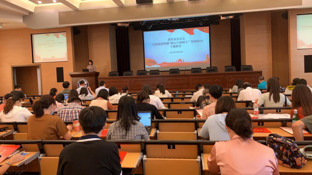 为强化教师“四史”学习教育,学习践行新时代师德规范。商贸系党总支于2021年10月20日在会议一开展师德师风专题教育活动。党总支全体教职工参加了此次活动。