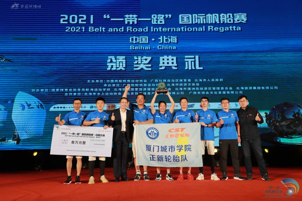 11月11日,在广西北海银滩海域举行的2021“一带一路”国际帆船赛(中国北海站)圆满收官。我校正新轮胎帆船队取得绕岛赛第一名,长航赛段第三名的好成绩,并最终获得2021“一带一路”国际帆船赛年度总冠军奖杯。