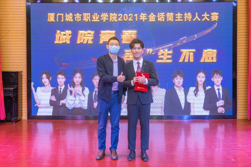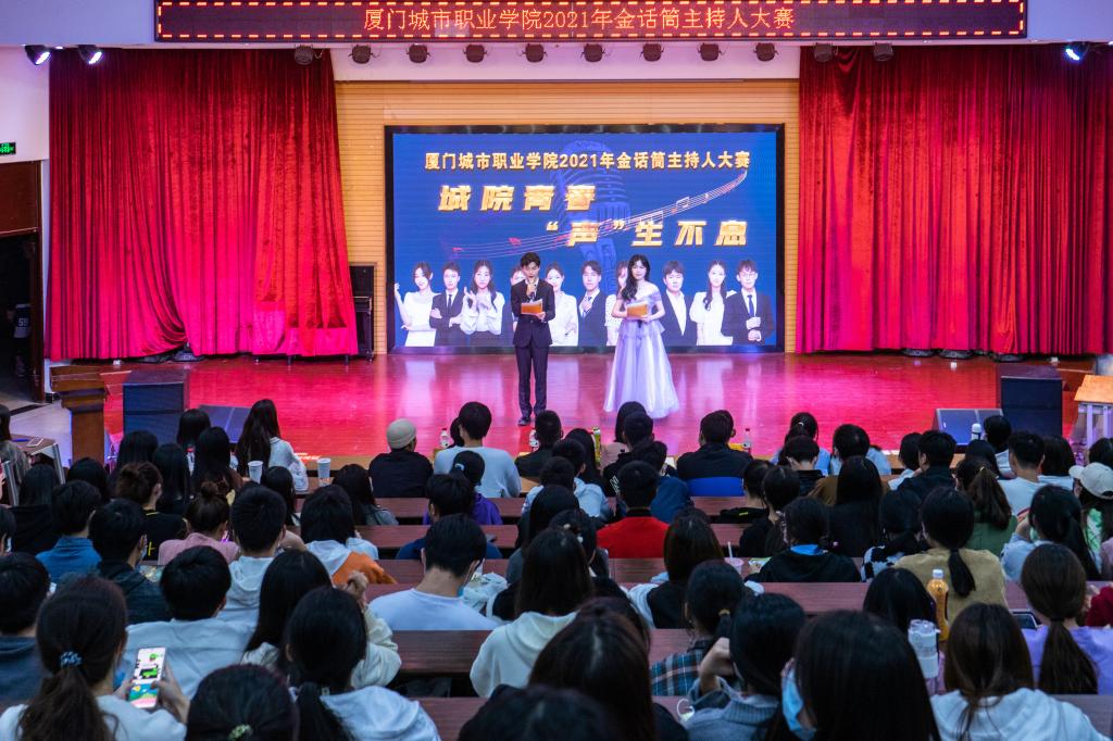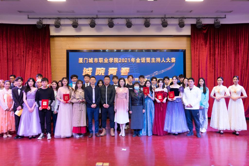 11月12日晚,我校第十六届“金话筒”校园主持人大赛在学生文化艺术中心成功举办,现场200余名师生共同观看了本次比赛。福建省播音主持协会会员陈菲菲,厦门华天涉外职业技术学院学生处副处长、团委副书记陈秋炜,校马克思主义学院副院长吴细玲,校团委副书记王克强担任比赛评委。