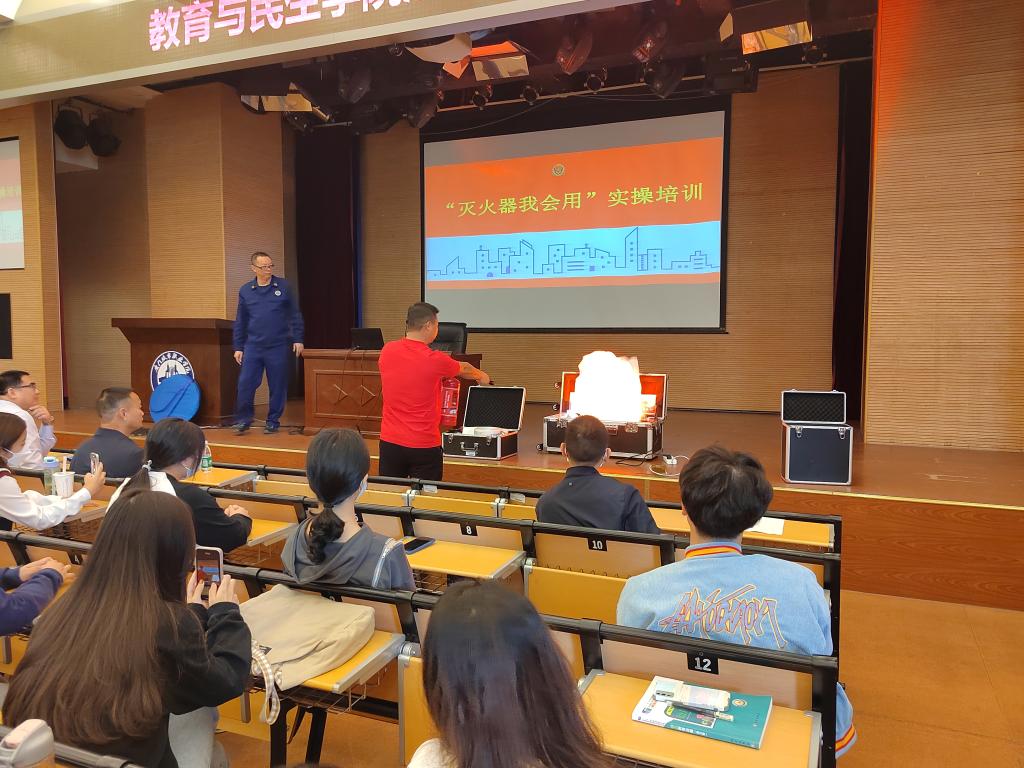 厦门市消防救援支队和思明区消防救援大队培训师林乐坦应邀为师生开展安全灭火实操培训,并在教育与民生学院实训室进行油画材料着火应急演练。