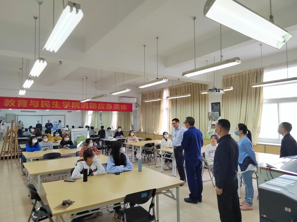 为了认真做好消防安全专项整治行动,切实提高师生的消防安全意识和普及应急管理技能,2021年11月16日中午,教育与民生学院在匠心楼A区206实训室和会议一开展消防应急演练。教育与民生学院党总支书记岳世川、院长曹绍炼、辅导员、实训室责任教师、全体班干部和宿舍长参与演练。