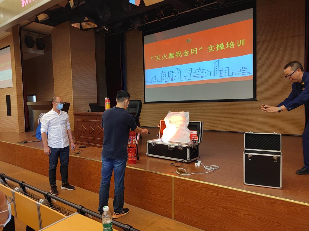 在校会议室一进行消防安全知识的讲座和灭火实操。林乐坦主要讲解了以下方面内容:一是解读典型火灾案例;二是讲解火灾防范措施;三是示范灭火器材操作方法;四是宣导疏散逃生技巧。