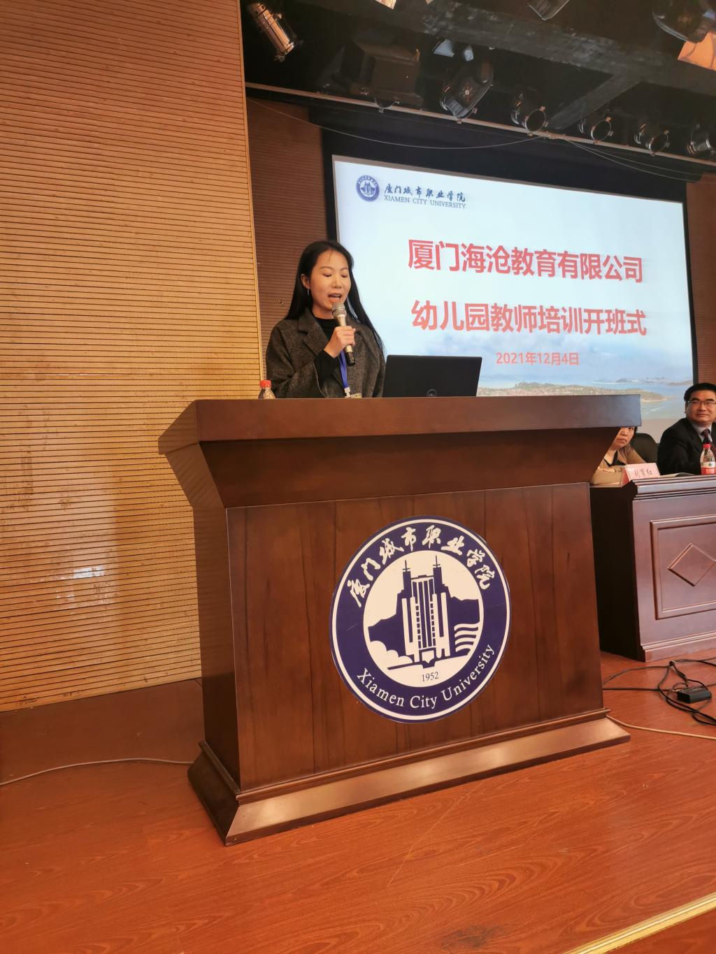 12月4日上午,我校在会议中心会议室一举行海沧教育发展有限公司幼儿园教师培训班开班式,来自海沧教育发展有限公司旗下的五所幼儿园121名教师参加。本次培训班由海沧教育发展有限公司委托我校由教育与民生学院举办。