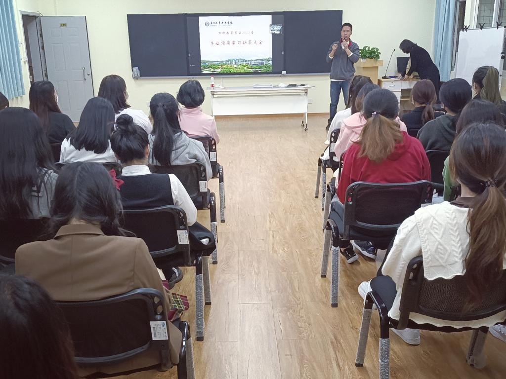 辅导员刘发煌对毕业与就业相关事务进行指导,并就国家政策性就业项目进行了解读。学前教育专业主任王慧敏、早期教育专业主任骆阳分专业给学生布置实习工作,对顶岗实习的时间安排、具体要求、考核标准进行说明,并安排指导老师与学生对接。
