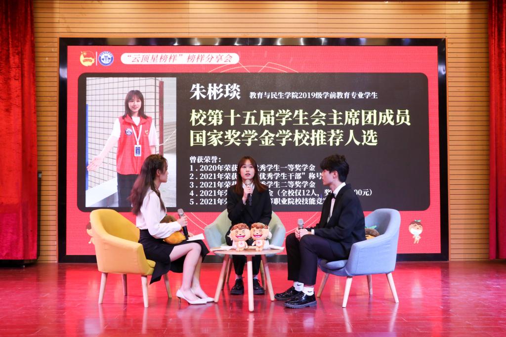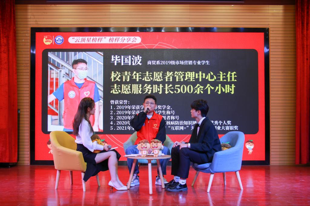“云顶星榜样”是能够代表我校优秀学子在学生工作、志愿服务、社会实践、参军报国和创新创业等领域具有引领示范作用的先进学生典型。