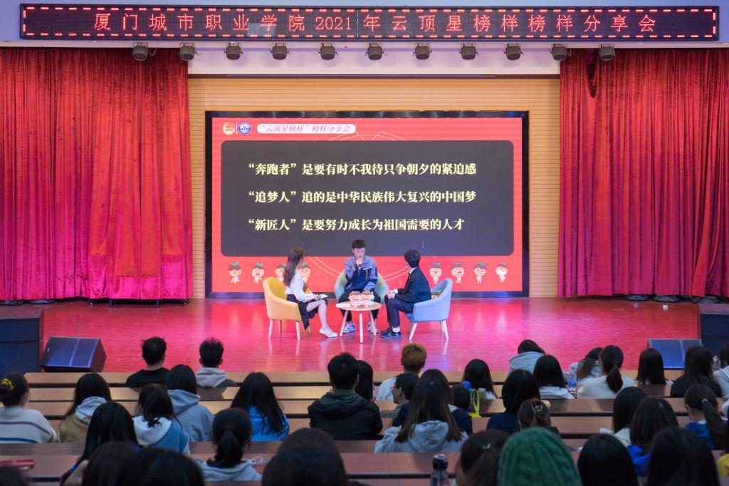 国家励志奖学金和学校全额奖学金获得者、机械与自动化工程系2019级机电设备维修与管理专业的曾林伟同学分享了自己从职业技能“小白”到专业竞赛达人的科技创新之路,他表示,“我把盖军衔精神和城院‘三好人’的要求作为自己的行动指南”,“青春,是追求卓越”。