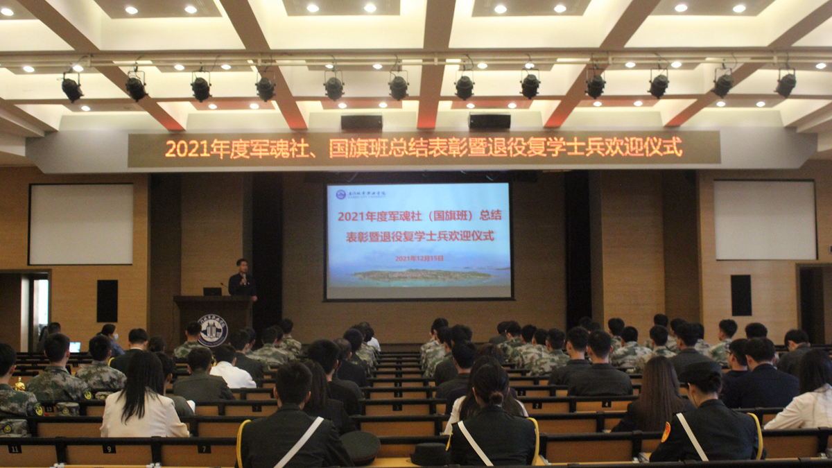 12月15日,学校2021年度军魂社国旗班总结表彰暨军训教官动员大会在会议一举行。校党委副书记王育培、学生处相关负责人、军事教研室相关老师以及全体退役复学士兵学生、国旗班成员参加大会。