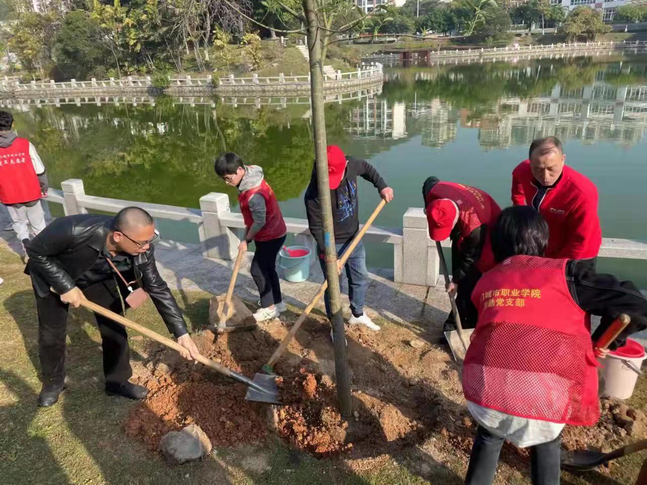 当天上午,副校长王福龙和基建与后勤管理处、学生工作处、团委等部门相关负责人、物业工作人员和学生代表等在南校区天鹅湖畔开展植树活动。