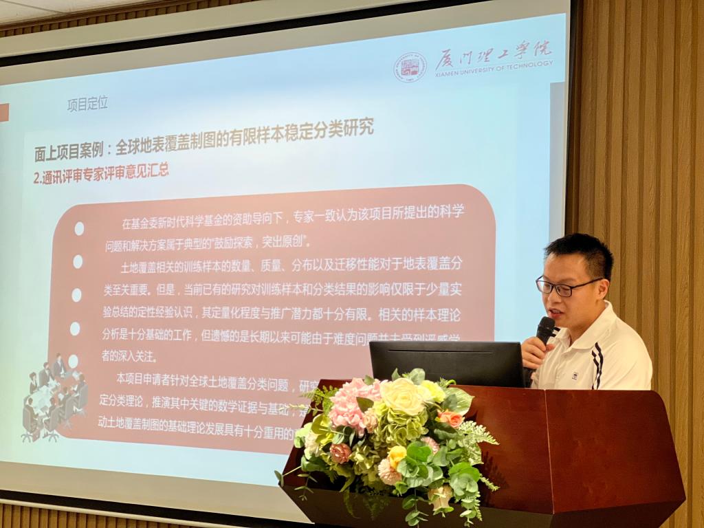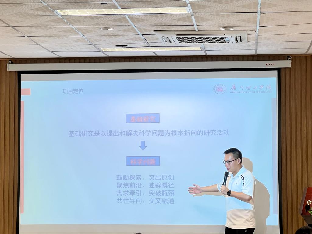 本场讲座邀请厦门理工学院洪朝群教授作《科研课题(自然基金类)申报交流》培训讲座。洪教授从项目定位、前期准备、撰写要点、收尾工作四个方面,结合自身课题申报经历,详细介绍、讲解了国家自然科学基金课题申报技巧及申报书撰写的重点和难点。