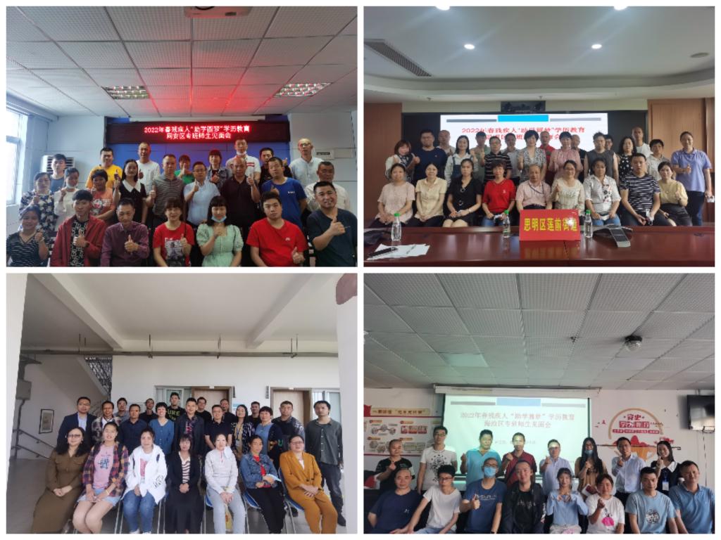 开放教育为了开放教育残疾学生能够尽快了解专业和掌握学习方法,适应开放大学学习氛围,4月27日至5月17日,厦门开放大学开放教育学院携手厦门市各区残联、翔安区子轩残疾人职业培训学校,在位于思明区、海沧区、集美区、同安区和翔安区的5个残疾人专班,分别举办2022年春季“助学圆梦”开放教育残疾人学历提升专班师生见面会,上好新生开学第一课,交流学习方法和心得,为残疾学生免费分发教材和学习用品。