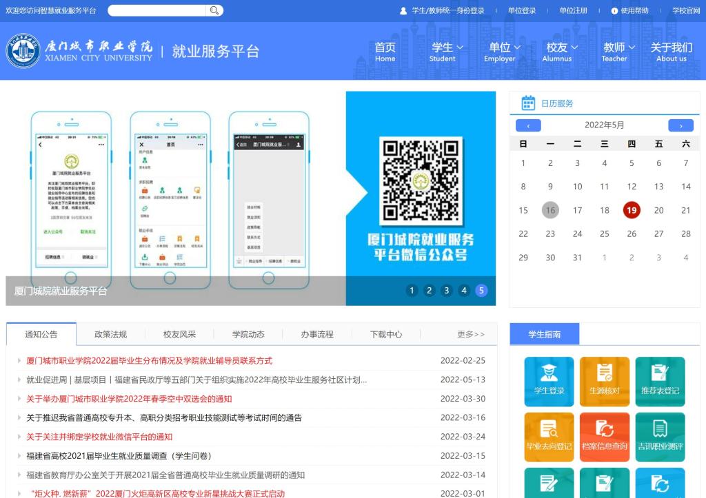 为加强毕业生就业工作的信息化建设,提升就业服务工作水平,学生工作处对原智慧就业服务系统进行升级改造,新版智慧就业服务平台于今年就业促进周正式上线。该平台启用新域名https://job.xmcu.edu.cn/,面向2022届毕业生和用人单位提供全天24小时无断线服务。