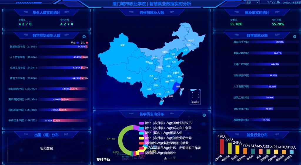 学校党委历来高度重视毕业生就业工作。在世纪大疫情背景下,高校毕业生就业工作面临的形势越来越严峻。如何因应形势变化,更好地服务毕业生实现好就业、就好业?学校坚持“以学生为中心、以奋斗者为本”的办学治校理念,持续建设“五位一体”的智慧就业信息服务体系,为毕业生实现高质量就业提供了更加坚实的技术支撑。