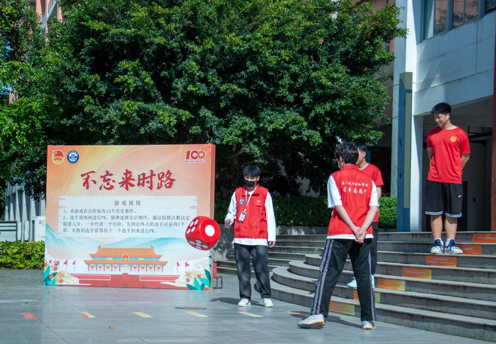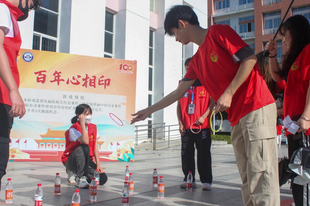 师生们从北校区田径场出发,途经城院站、盖军衔雕塑、四区学生广场、党群服务中心、时光隧道、南区运动馆等地,跑步区域贯穿南北校区,全程共3公里。活动结合中国共青团成立100周年内容,在途中共设置8个打卡点,包括“青春心向党”“团歌我来唱”“薪火永相传”“百年心相印”“不忘来时路”等游园趣味主题闯关活动,使广大师生在奔跑中重温伟大历史,感悟初心使命。