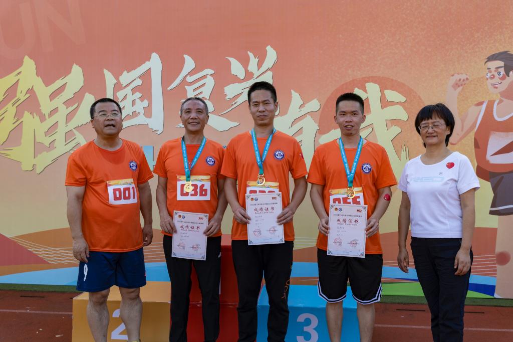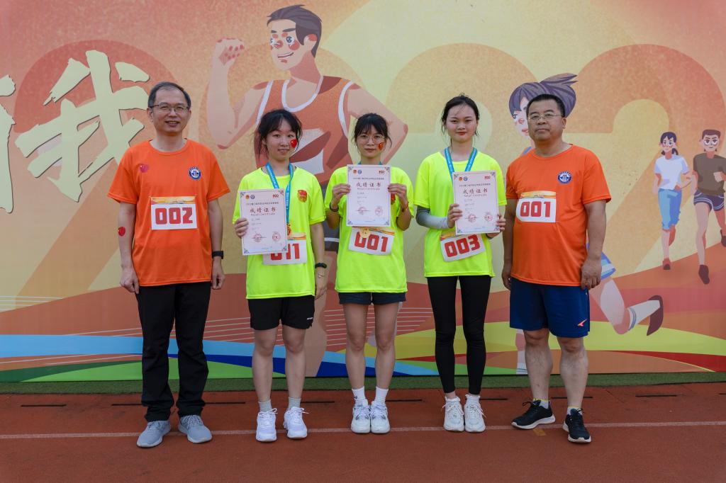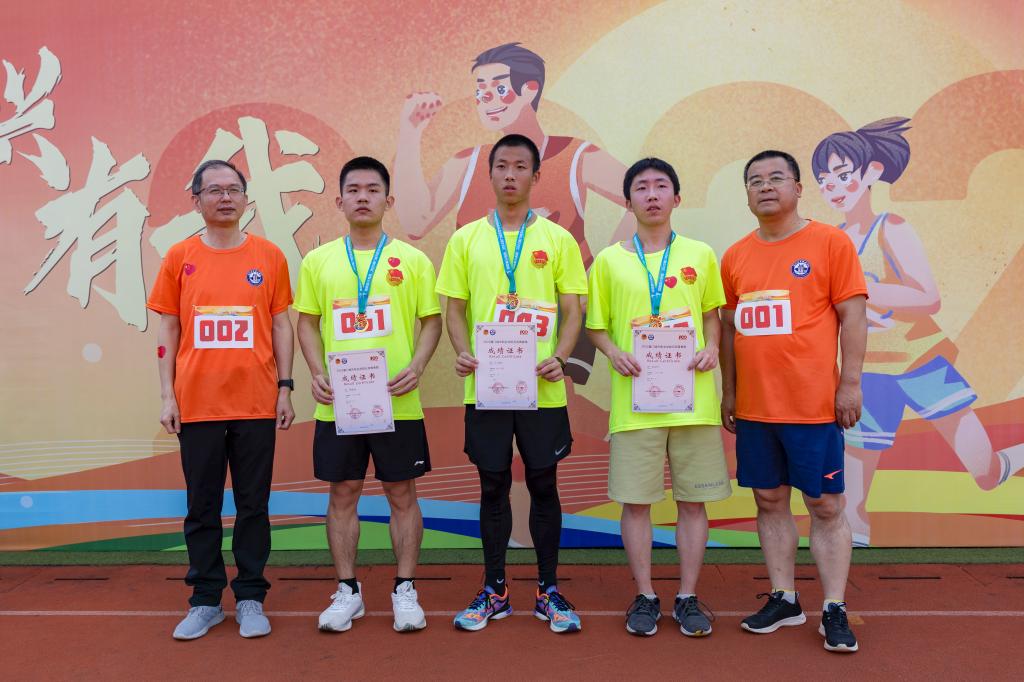比赛结束后,蒋先立、唐宁为参加此次青春跑男子组、青春跑女子组、健康跑男子组、健康跑女子组前3名的师生颁发奖牌及成绩证明。