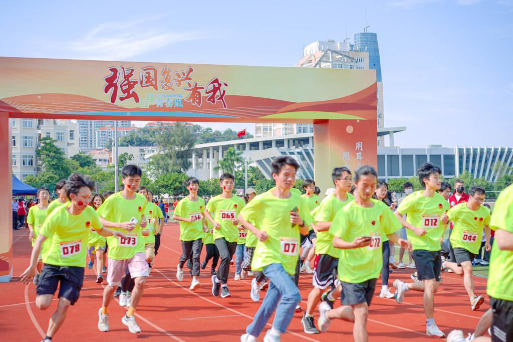 这是我校连续第五年举办校园青春跑活动,活动融合体育、美育、德育、红色文化、志愿服务于一体,是一次身体力行、青春向上、锻炼意志的“青年大学习”思政大课,引导广大师生进一步激扬奋斗精神,厚植爱国情怀,奋进新征程,以优异成绩迎接党的二十大胜利召开。