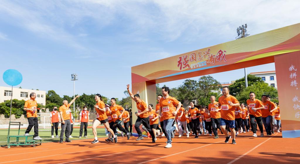 15时许,校党委书记蒋先立、校长唐宁分别为学生青春跑、教职工健康跑鸣枪发令。