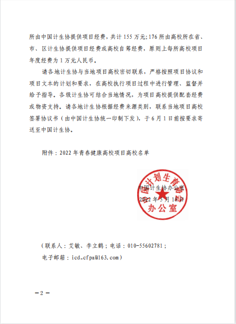 下一步,学校将密切联系属地计生协会,以推动项目实施完成为契机,不断扩大青年健康教育工作覆盖面,提升青年健康教育服务能力,为贯彻落实《“健康中国2030”规划纲要》作出积极贡献。