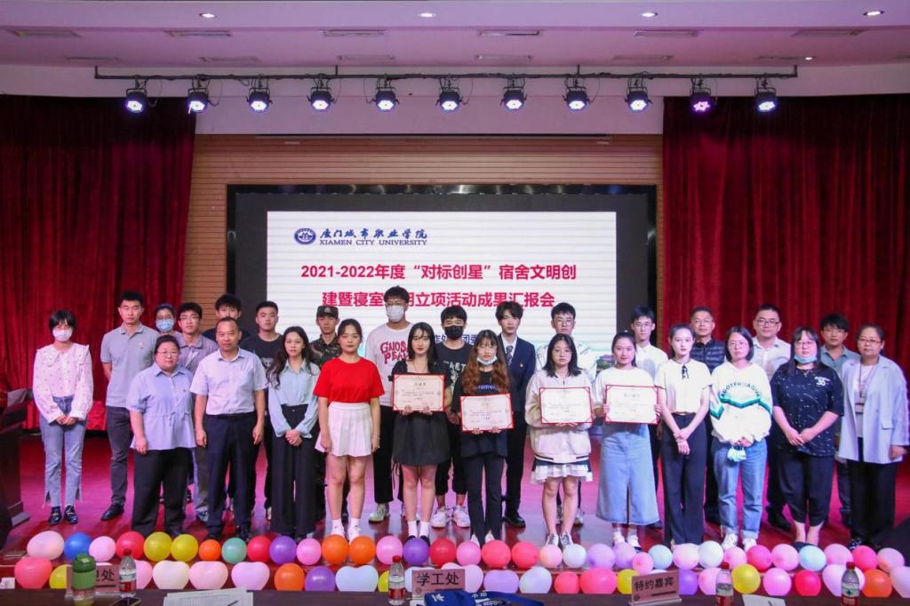 6月9日晚,我校在明德楼四区学生文化活动中心举行了2021-2022学年“对标创星”宿舍文明创建暨寝室文明建设立项活动成果汇报会。校党委王育培副书记,学工处、保卫处、团委、各党总支负责人以及相关辅导员老师,建发公建物业公司经理参加。