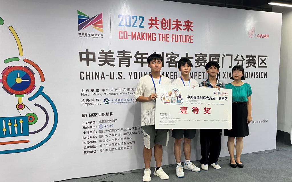 7月8日—10日,在2022年中美创客大赛厦门分赛区决赛中,我校“草帽组合”团队凭“助力前行”项目荣获得分赛区决赛一等奖。