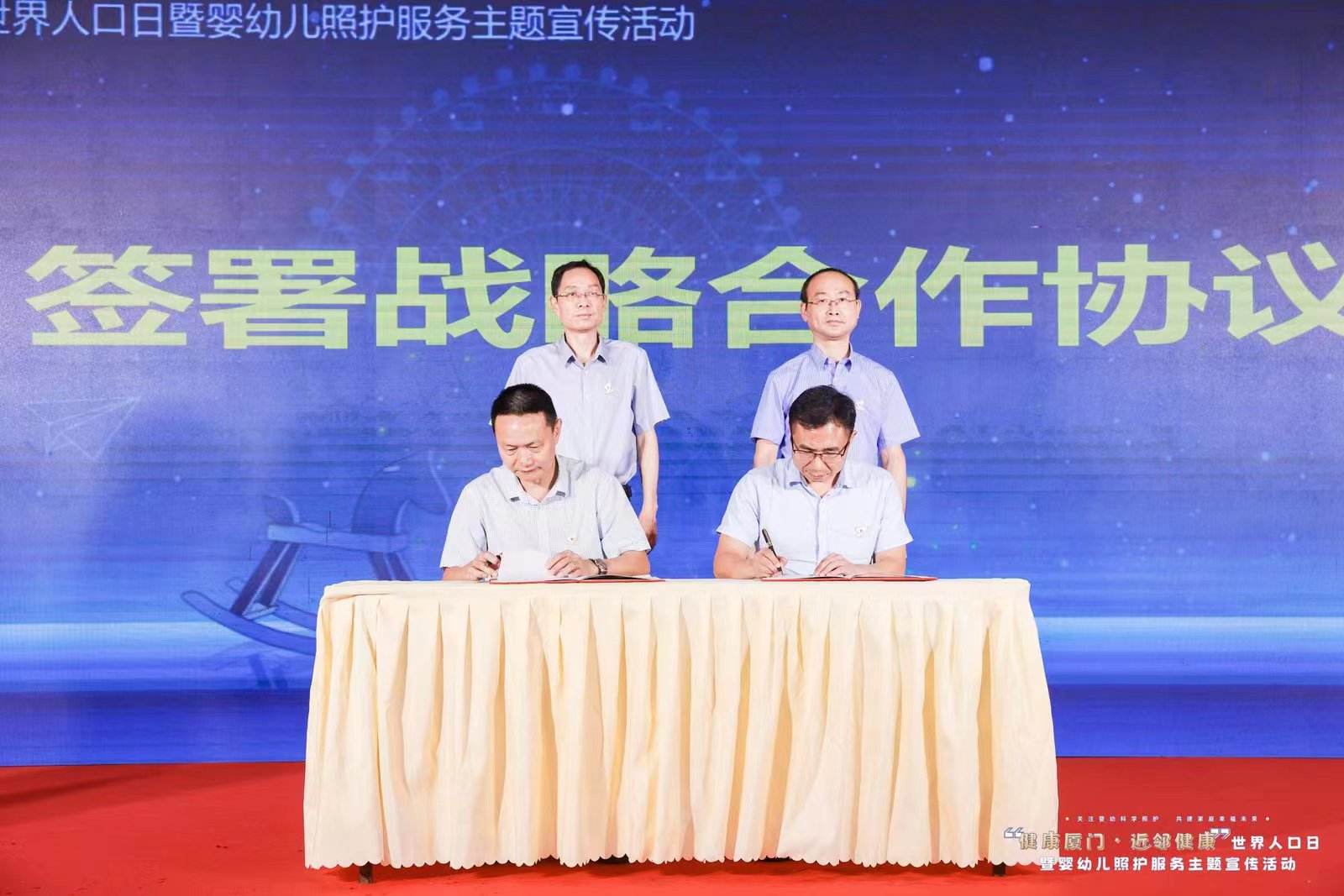 当天也是厦门市卫生健康委员会主办、厦门市家庭发展事务中心承办的“健康厦门·近邻健康”世界人口日暨婴幼儿照护服务主题宣传日。吴松青副校长带领教育民生学院党政负责人及专业教师一行参加了活动,和厦门市卫健委党组成员、副主任陈文锋等领导共同见证了“托育养老战略合作协议”的签订,并联合向安居教育集团、天地教育集团2个婴幼儿照护服务专业实训基地授牌。