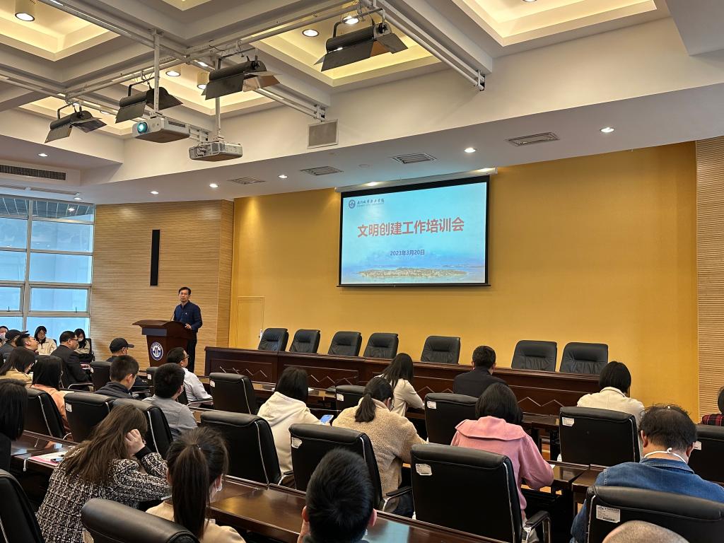 3月20日下午,我校召开文明创建工作培训会,校党委副书记王育培,组织部、宣传部、基建与后勤管理处、保卫处、团委负责人,各总支志愿者、物业相关人员等参加。