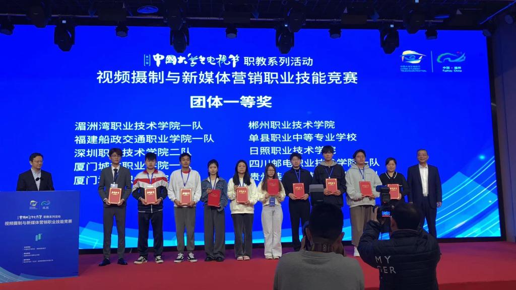 3月24日-25日,第十一届中国大学生电视节职教系列活动之视频摄制与新媒体营销职业技能竞赛在福州落幕。由我校影视动画学院动漫设计专业赵艳老师和数媒专业吴承佳老师分别指导的两支参赛队伍双双荣获团体一等奖。