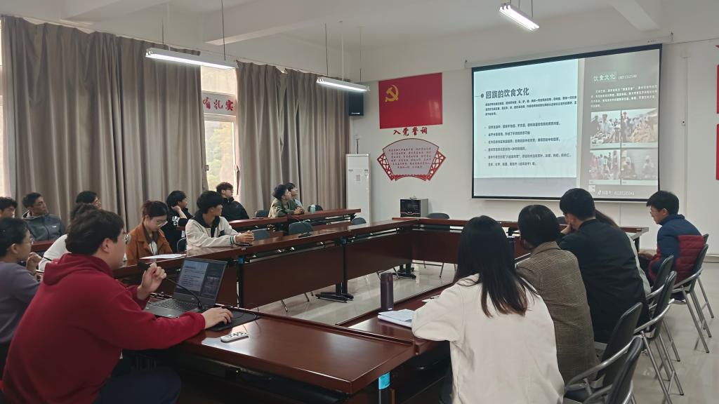 “五十六个民族,五十六支花,五十六族兄弟姐妹是一家”在齐声合唱《爱我中华》的热烈气氛中,交流会拉开了序幕。来自黎族、壮族、回族、畲族、苗族、藏族、土家族、仡佬族和穿青人的学生代表分别向大家展示了本民族的历史沿袭、民族文化、着装、饮食等风俗习惯,让大家体会到了各民族的多彩文化与独特魅力,也感受到了不同民族之间互通共融、团结同心的共同体意识。
