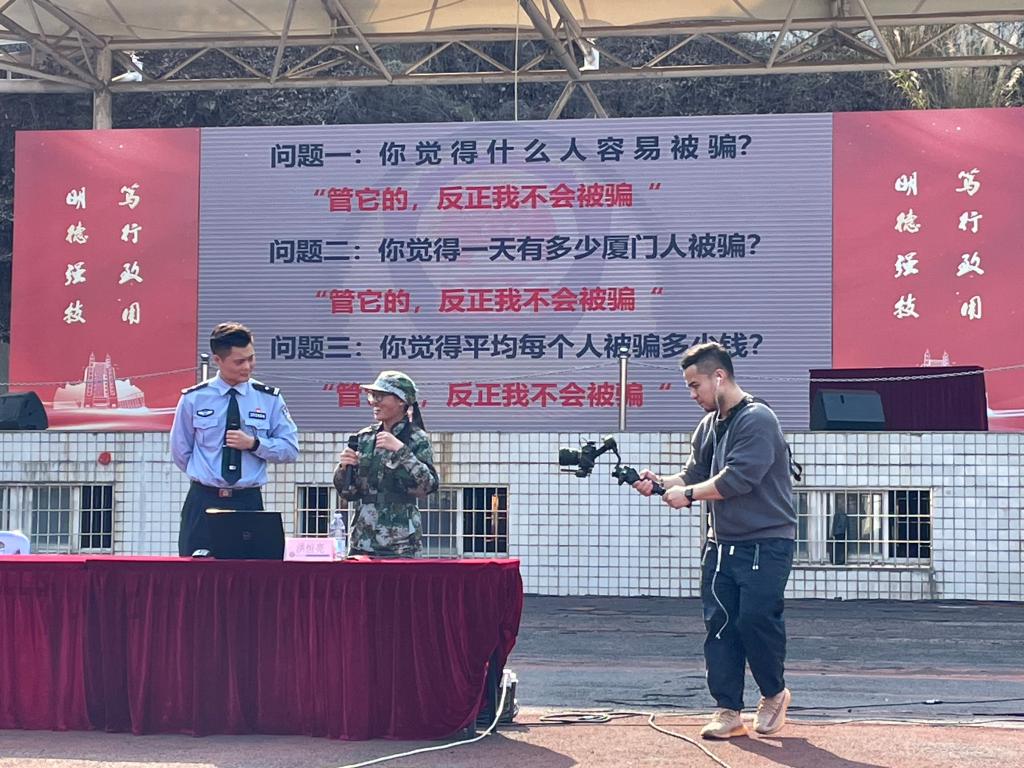 结合我校“2023年雷锋月”,3月3日,信息与保卫党支部与何厝派出所民警联合开展反诈知识科普及宣传,现场发放各类防诈反诈宣传单,现场咨询问答,围绕网络购物诈骗、杀猪盘、信用卡诈骗等内容,结合案例开展针对性防诈骗教育。3月9日,邀请厦门市公安局刑侦支队洪恒亮警官面向军训学生开展“诈骗的那些事儿”专题宣传教育,有效提高学生防诈骗鉴别能力,增强学生防诈骗意识,切实提高师生们的诈骗“抵抗力”。