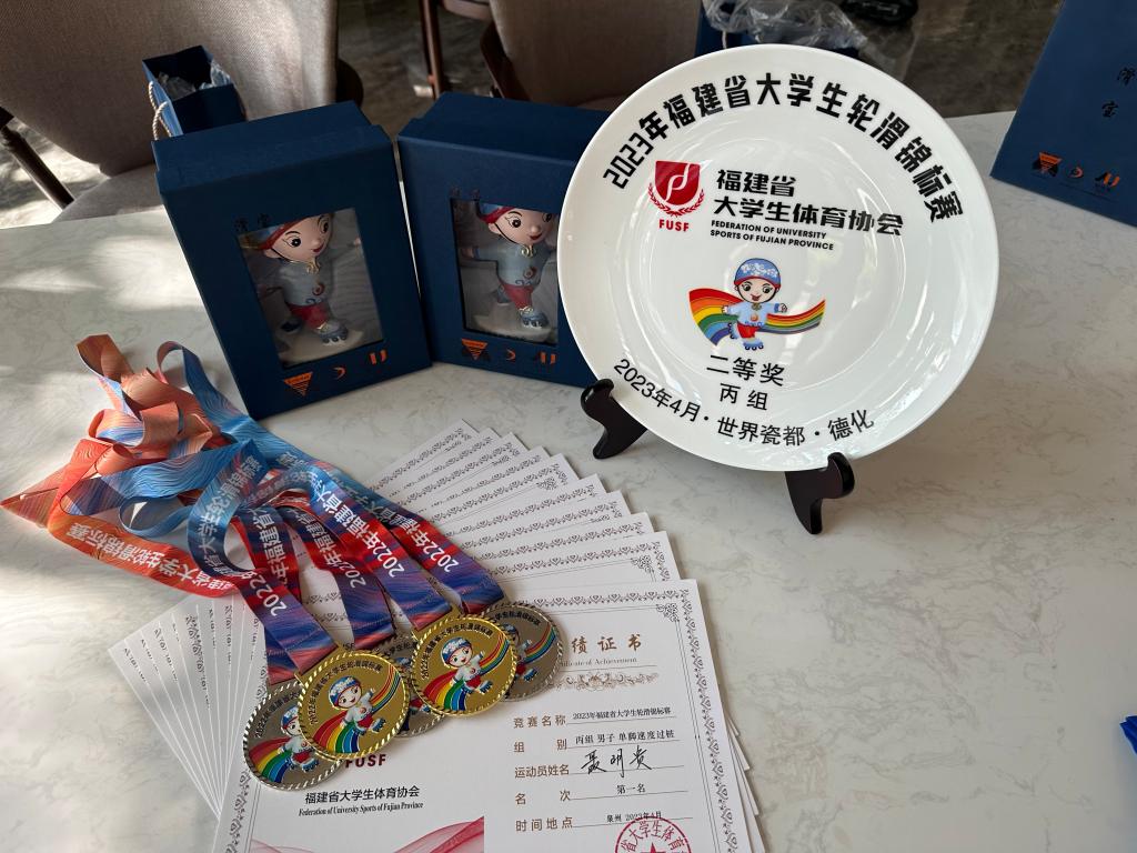 4月7日-9日,由福建省大学生体育协会主办,德化县教育局承办的2023年福建省大学生轮滑锦标赛圆满落下帷幕。我校代表队在领队郑海波、教练柯银珊老师的带领下,队员们团结协作,奋力拼搏,勇夺男子单脚速度过桩金牌、银牌,女子单脚速度过桩金牌、银牌和女子500米速滑银牌,团体荣获得丙组二等奖(第三名)的佳绩!