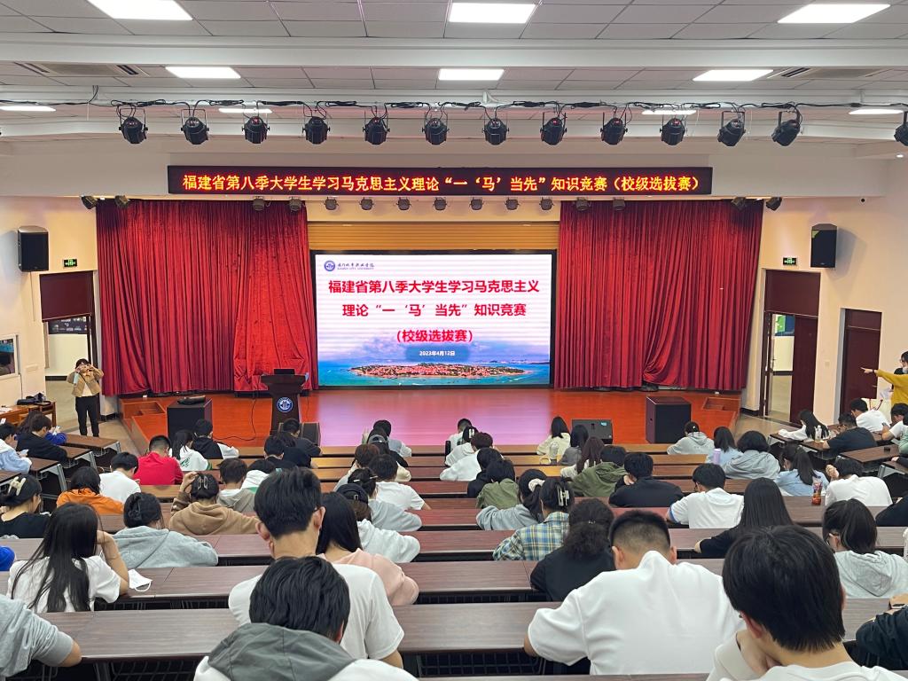 4月12日下午,我校在会议中心和学生活动中心举办2023年福建省第八季大学生学习马克思主义理论“一‘马’当先”知识竞赛校级选拔赛,全校近400名学生参加,本次选拔赛由学生工作处和马克思主义学院联合举办。