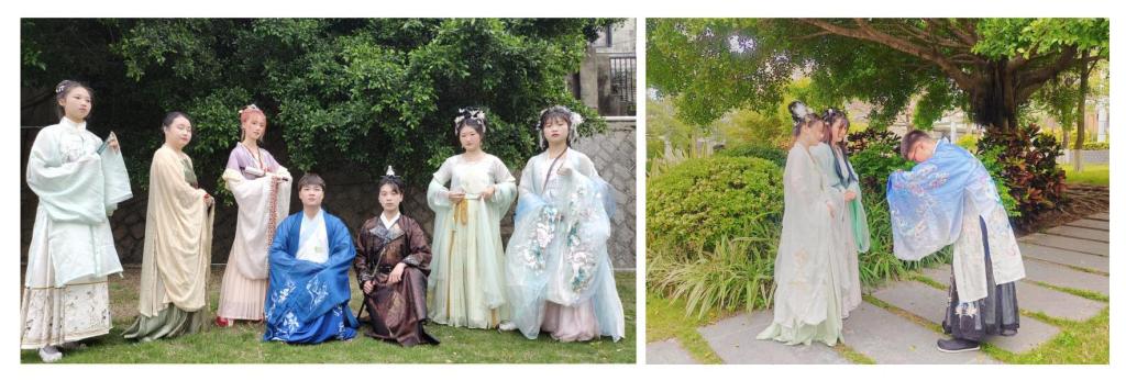 本次活动得到了学校学生社团“松烟汉服社”的大力支持,成员们穿上自己喜爱的汉服漫步在校园里,演绎出一幅幅阳刚潇洒、隽秀灵动的“游春图”,向师生们传递中华优秀传统文化中天人合一、因时而动、自强不息、热爱生命、敬畏自然的深厚寓意。