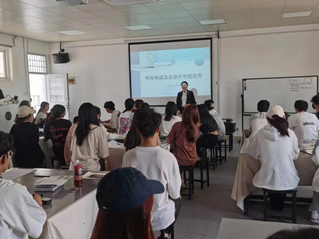 刘萍老师的示范课专题为“特异构成在设计中的应用”,课程结合中国各类美学设计的典型案例,生动形象地向同学们讲解了特异构成这部分的知识点,引导学生在传承中华美学精神的基础上,立足服务人的全面发展、服务经济社会发展、服务新发展格局,创新设计风格和特色,提升自身核心竞争力。