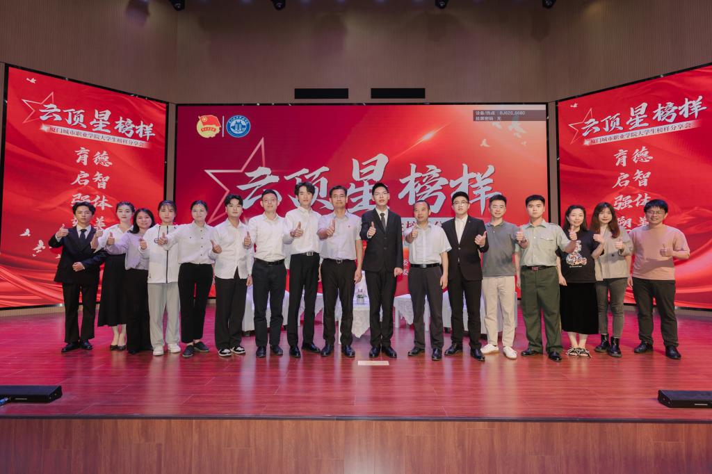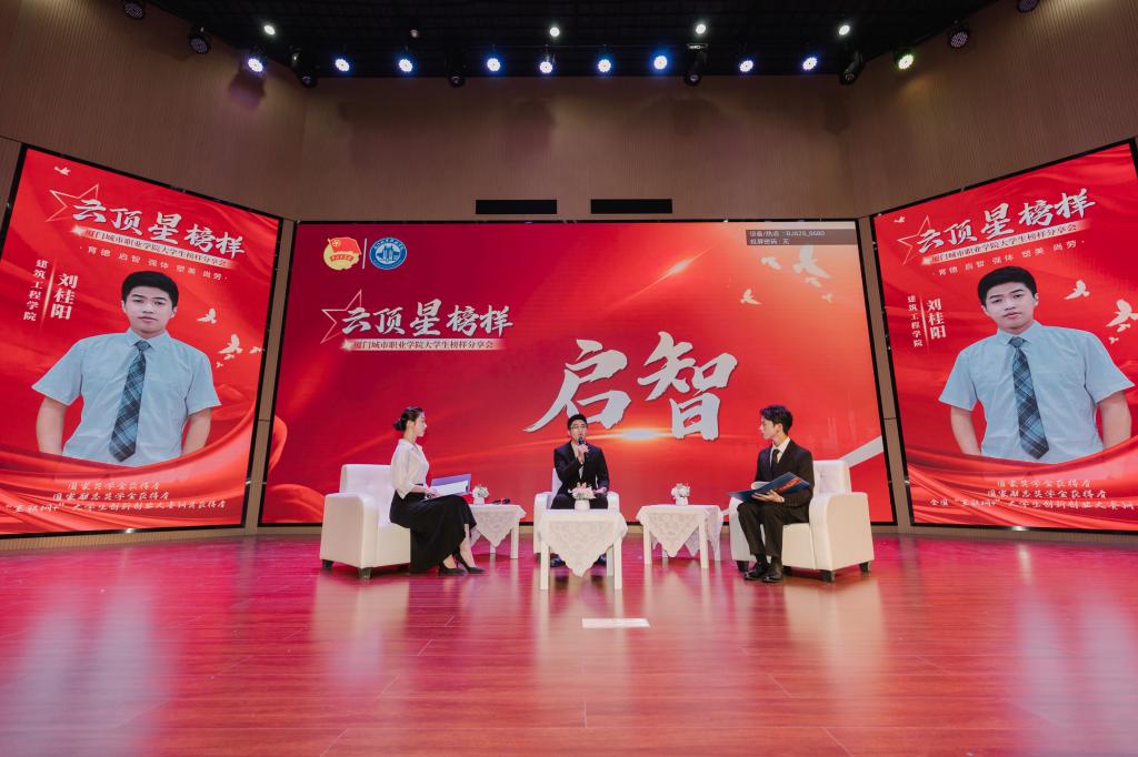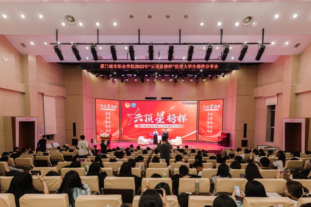 为选树先进典型,充分发挥榜样的示范引领作用,4月19日晚,我校在笃行楼报告厅举办“奋斗的青春最美丽”——2023年“云顶星榜样”优秀大学生榜样分享会。校党委副书记王育培,学生工作处、团委等部门负责人、各二级学院团干和学生代表200余人参加活动。