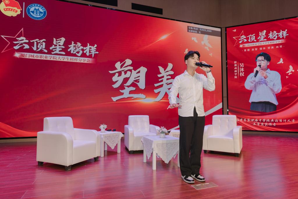 本次分享会围绕“育德”“启智”“强体”“塑美”“尚劳”等5个关于青春奋斗关键词,邀请我校在不同领域同样出彩6名优秀学生,与在场师生面对面分享自己的青春奋斗故事。