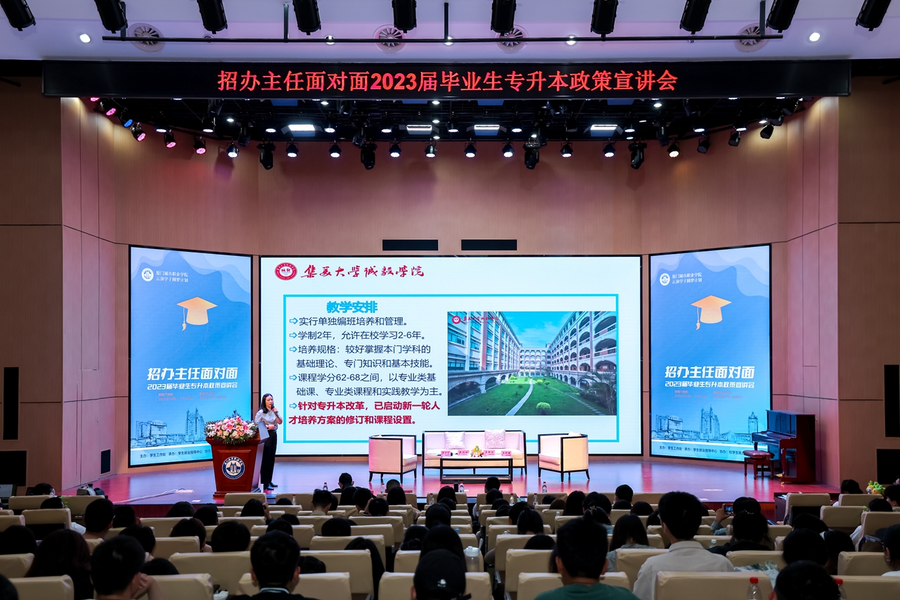4月24日下午,我校在笃行楼报告厅举办“招办主任面对面”——2023届毕业生专升本政策宣讲会,邀请厦门理工学院和集美大学诚毅学院两位资深招办专家为云顶学子解读最新招考政策,助力圆梦专升本。学生工作处、团委等部门负责人,各二级学院就业辅导员和学生代表200余人参加宣讲会。
