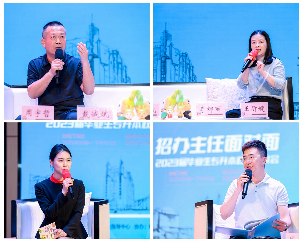 在嘉宾访谈和互动提问环节,两位嘉宾和我校学工处招办负责人就“专升本的志愿填报流程及注意事项”“报考类别调整后的跨专业跨类别报考”“获奖考生和退役大学生士兵考生报考在考试内容和录取方式等方面同普通考生的区别”等同学们关心的热点问题进行了详细解答。