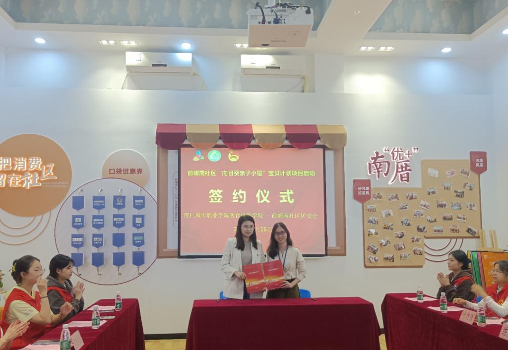 4月26日下午,学校党委和前埔南社区党委在前埔南社区联合举办“向日葵亲子小屋”宝贝计划项目启动仪式。学校党委委员、组织部(统战部)部长杜俊玉、组织部工作人员、教育民生学院工作人员、学生代表以及前埔南社区工作人员参加了此次活动。