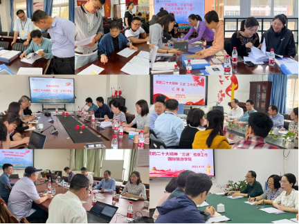 党的二十大胜利召开以来,学校全面推进党的二十大精神“三进”工作,深入开展“十百千”党的二十大精神宣讲,让党的创新理论“带着热气”进教材、进课堂、进头脑。各教学单位党政负责人亲自督促推进本单位党的二十大精神“三进”工作,各专业深入挖掘专业课程的思政元素及内涵,将党的二十大精神融会贯通到教书育人全过程。例如,教育民生学院突出文化浸润,举办了党的二十大精神“三进”——“铸牢中华民族共同体意识”专题美术作品展;创新创业学院把学校的文化内涵转化为文创符号,组织了党的二十大精神“三进”学生实践项目——文创集市;影视动画学院坚持党建引领,开展了党的二十大精神“三进”党员示范课。