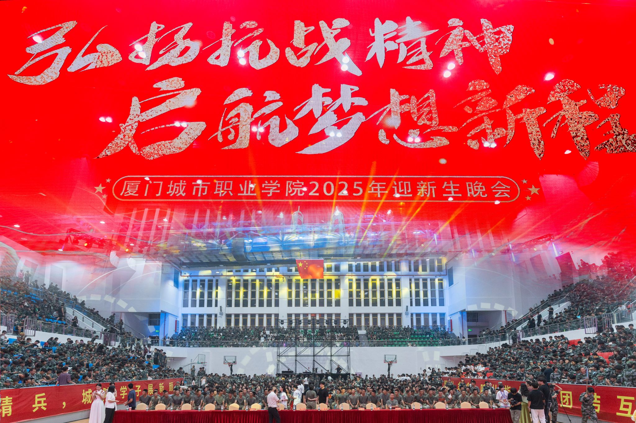 9月28日晚,我校在北校区体育馆举行“弘扬抗战精神 启航梦想新程”2025年迎新生主题文艺晚会。市民宗局民族工作处三级调研员陈国锋,思明区委统战部副部长、区民宗局局长、区侨办主任侯民,校党委书记蒋先立,校长唐宁,党委副书记王育培,副校长陈斌圳,党委委员、组织部部长杜俊玉,军训承训单位全体官兵和全体2025级新生共同观看文艺晚会。