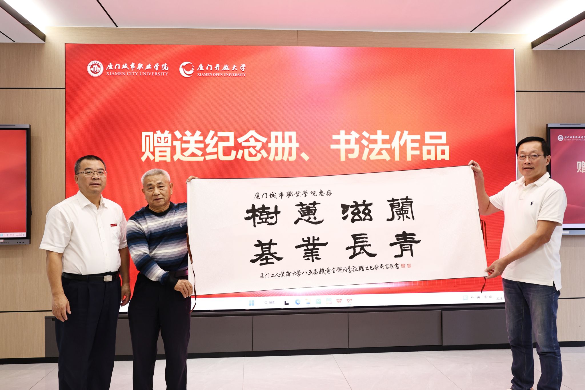 座谈交流环节,原厦门工人业余大学校长徐培松、校友杨为民、卓冠雄等先后发言,深情回顾了与85届校友共度的校园时光,分享了往昔执教与求学的珍贵记忆,引发了在场师生的强烈共鸣。会上,校友代表还向学校赠送了《我与学校共成长》纪念册以及书法作品,表达对母校的深厚情谊与美好祝愿,表示愿积极为母校高质量发展贡献智慧力量。