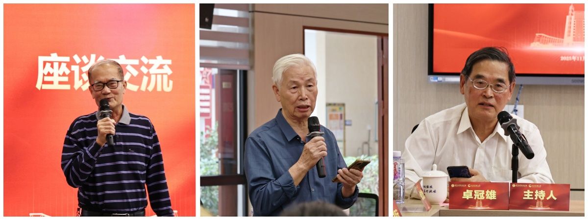 原厦门工人业余大学校长徐培松、校友杨为民、卓冠雄发言