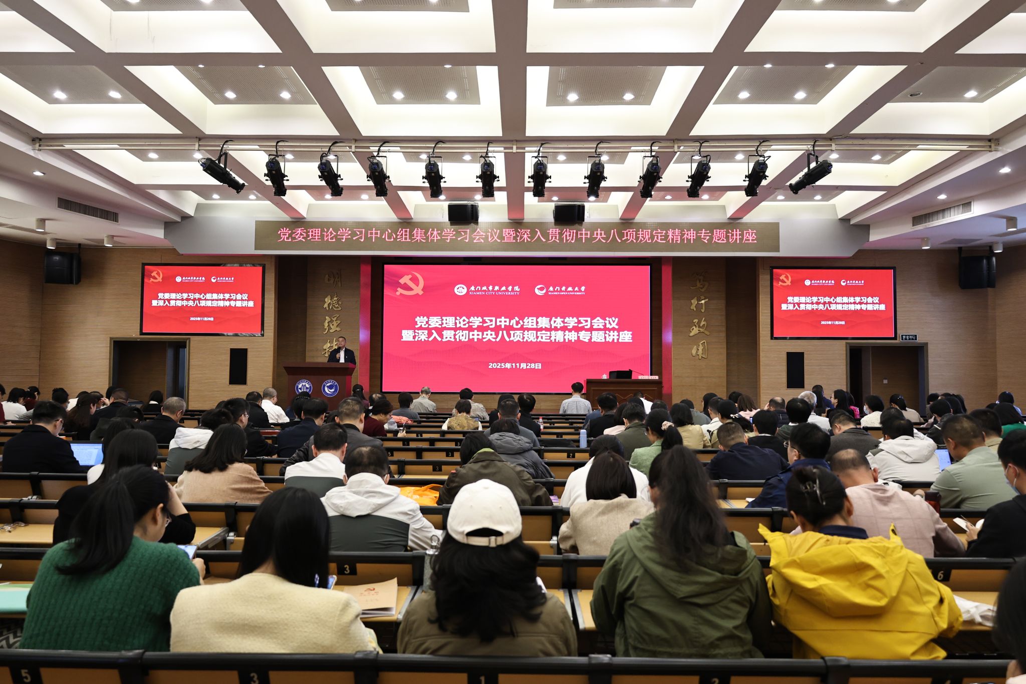为进一步拓展深入贯彻中央八项规定精神学习教育成果,11月28日,我校召开党委理论学习中心组集体学习会议,邀请厦门市纪委监委党风政风监督室主任高志伟作《突出常态长效 锲而不舍落实中央八项规定精神》专题讲座。本次活动也是学校2025年“廉洁教育活动月”的重要工作安排之一。校领导、中层干部和全体党员参加,会议由党委书记蒋先立主持。