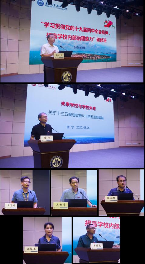 校领导王育培、吴松青、陈旭辉、陈桂兰、王福龙分别结合研修内容,针对各自分管领域工作,就新学期的工作思路和安排向大家作了报告。