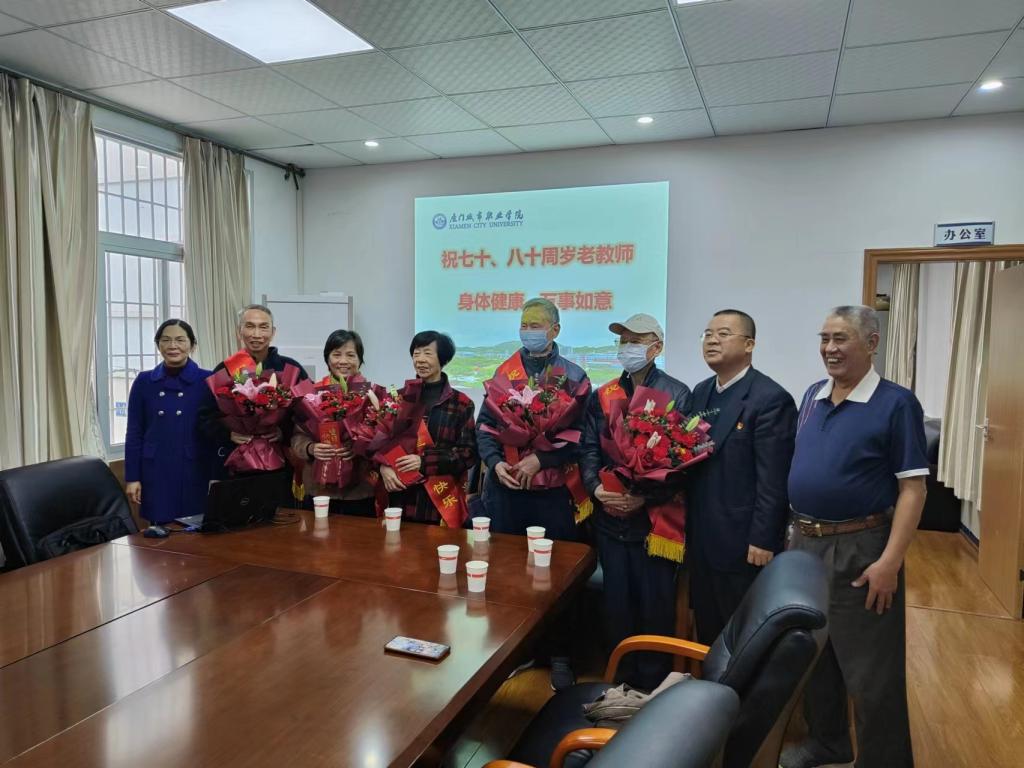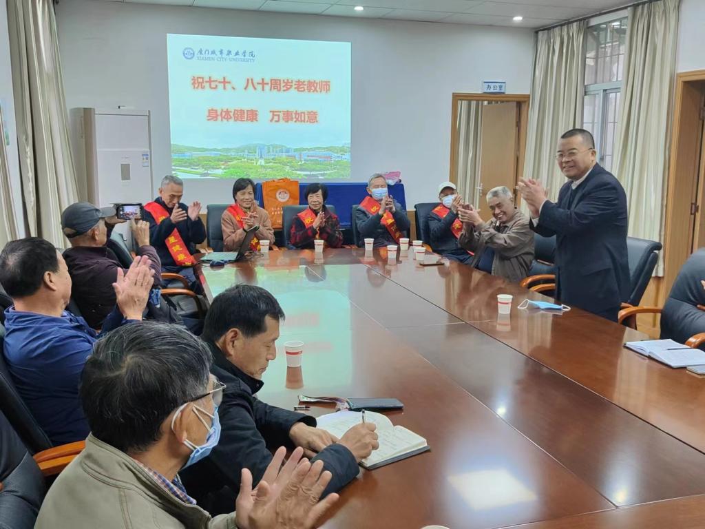 12月14日上午,我校在斗西校区为今年70周岁、80周岁的退休老教师举办生日祝寿会。校党委书记蒋先立、人事处负责人及全体退教协会理事参加。